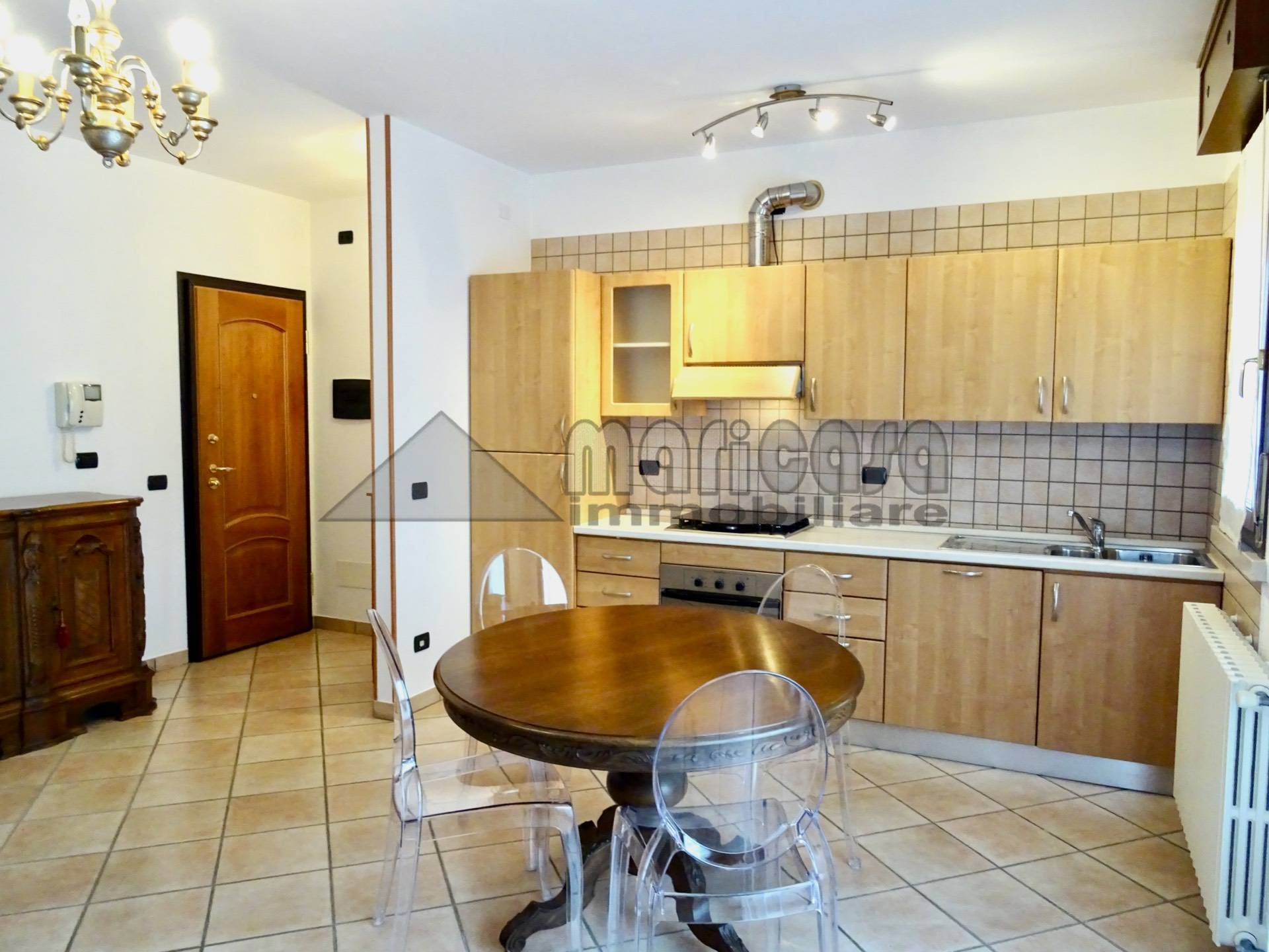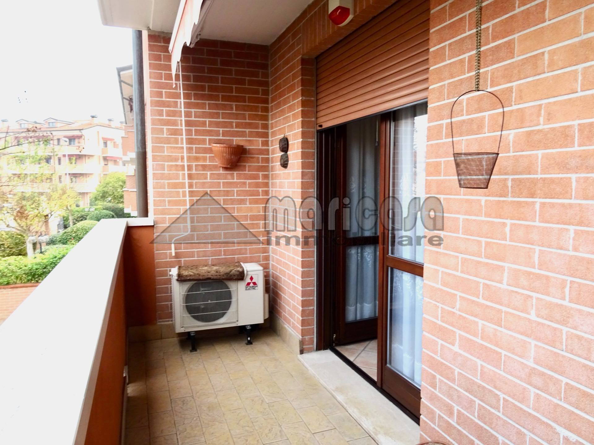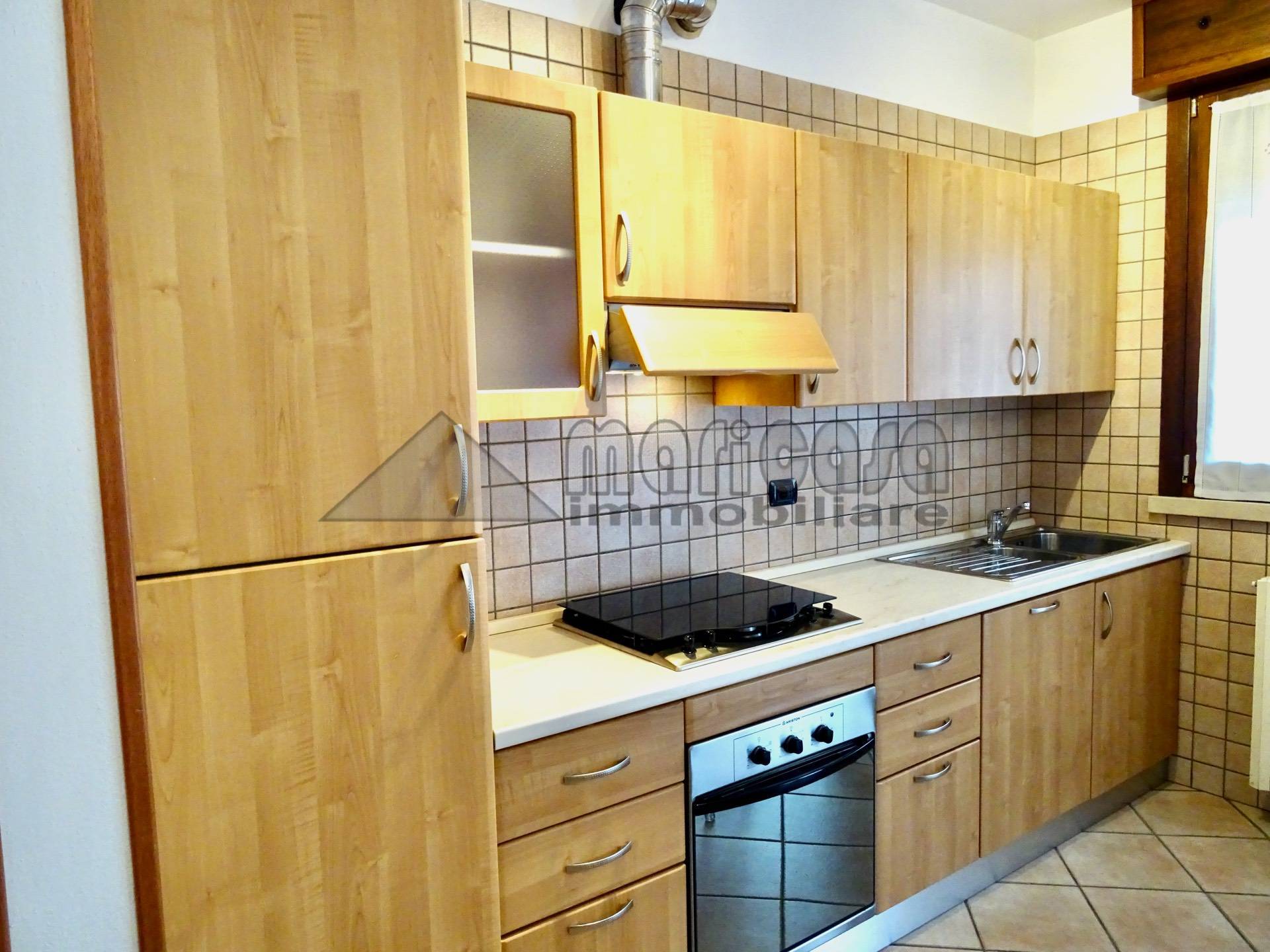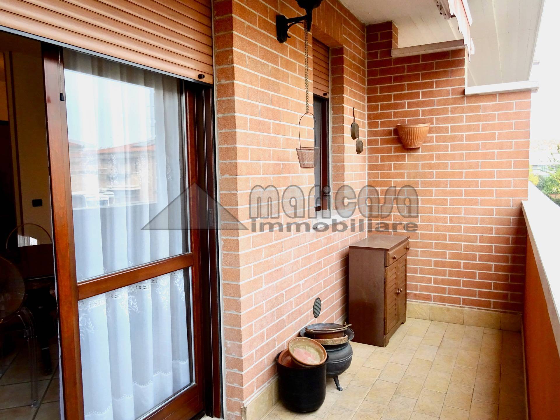 Posto al primo piano e servito da ascensore è composto da: ingresso nel soggiorno con angolo cottura e grande balcone, una camera matrimoniale con secondo balcone, una camera singola, bagno finestrato con doccia e ripostiglio.