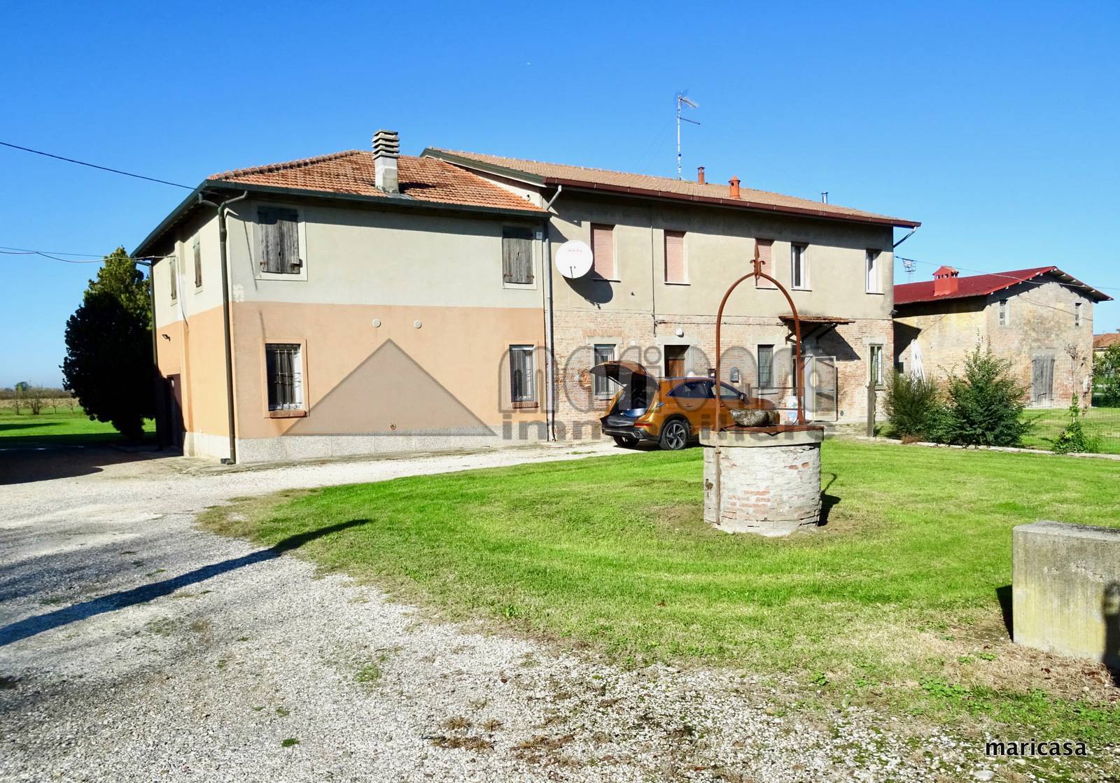 Completa di terreno agricolo di circa 6000 metri quadri, la casa colonica è servita dall'allacciamento di gas e acqua ed il giardino antistante la casa affaccia su una comoda strada asfaltata che conduce direttamente al collegamento autostradale con Bologna e Padova.