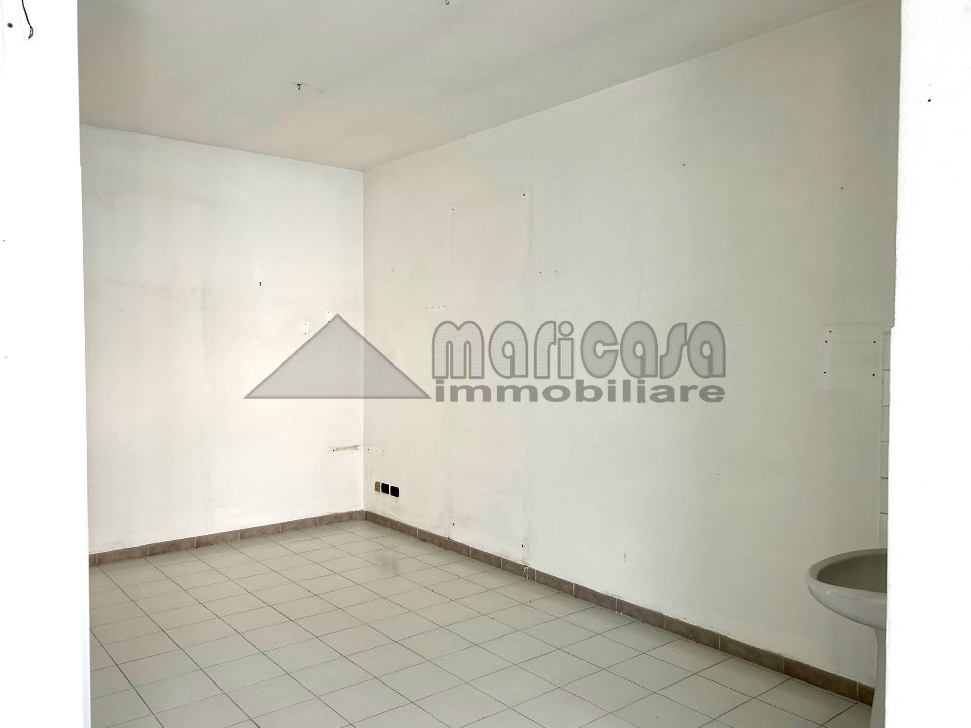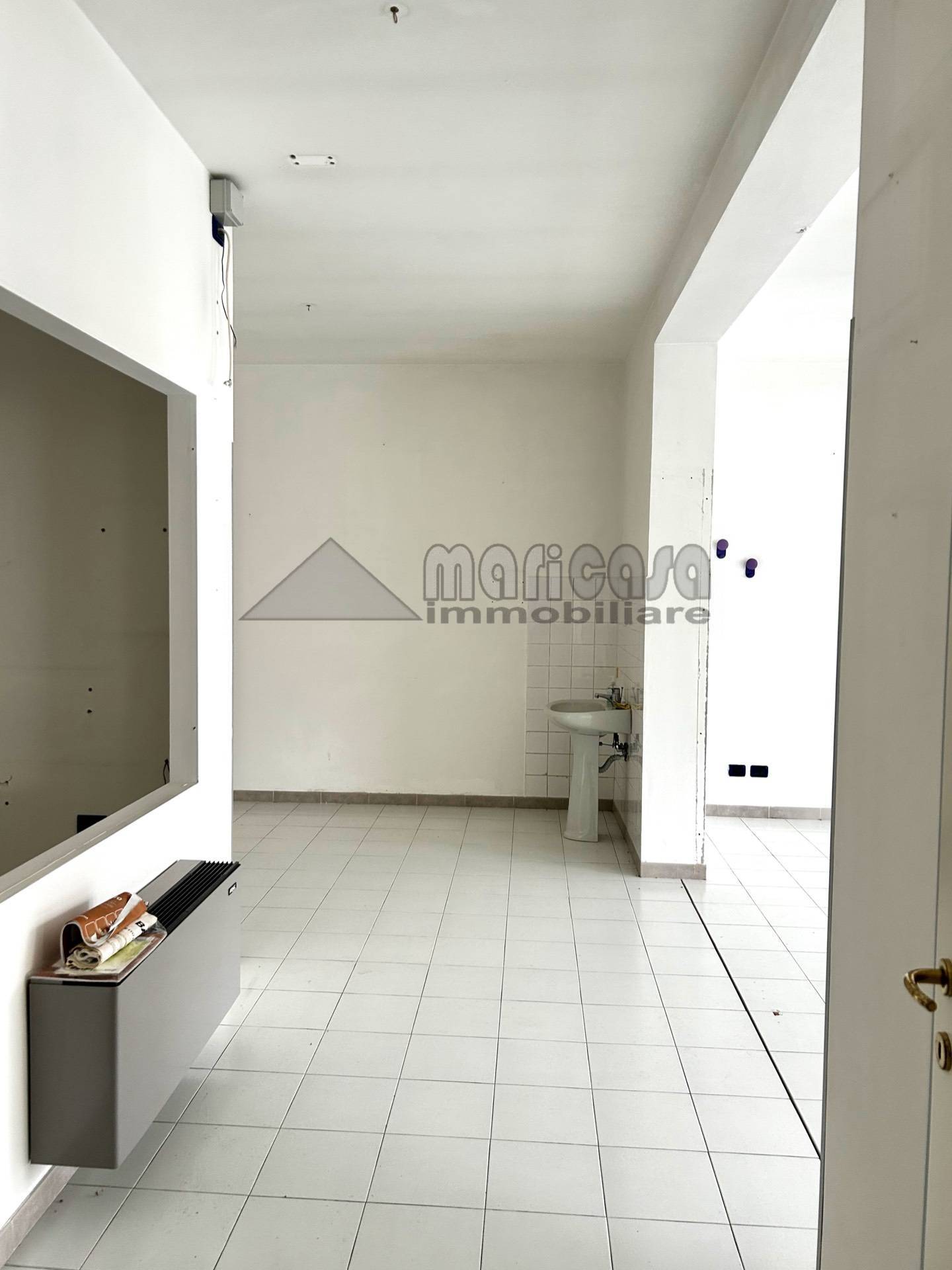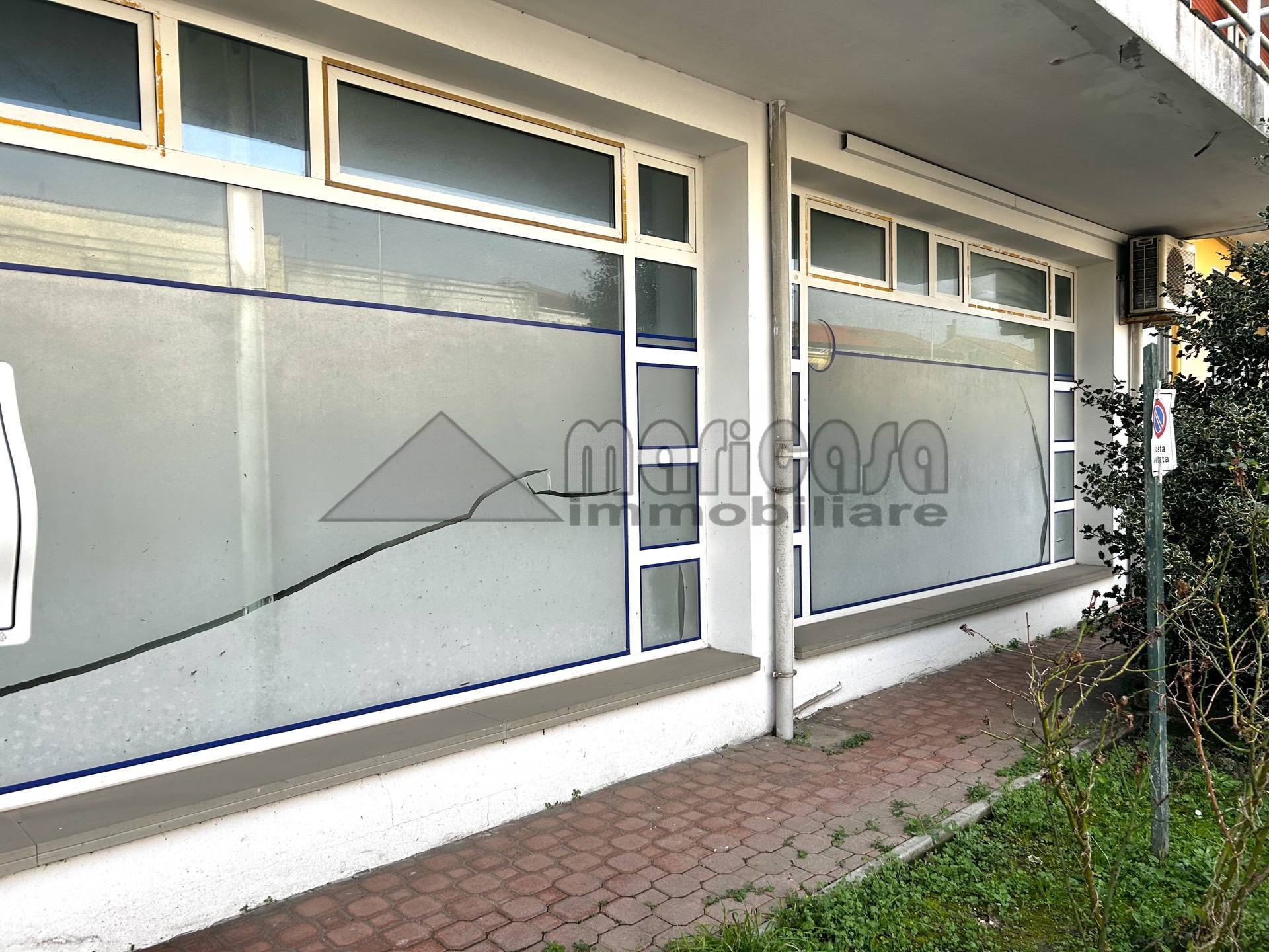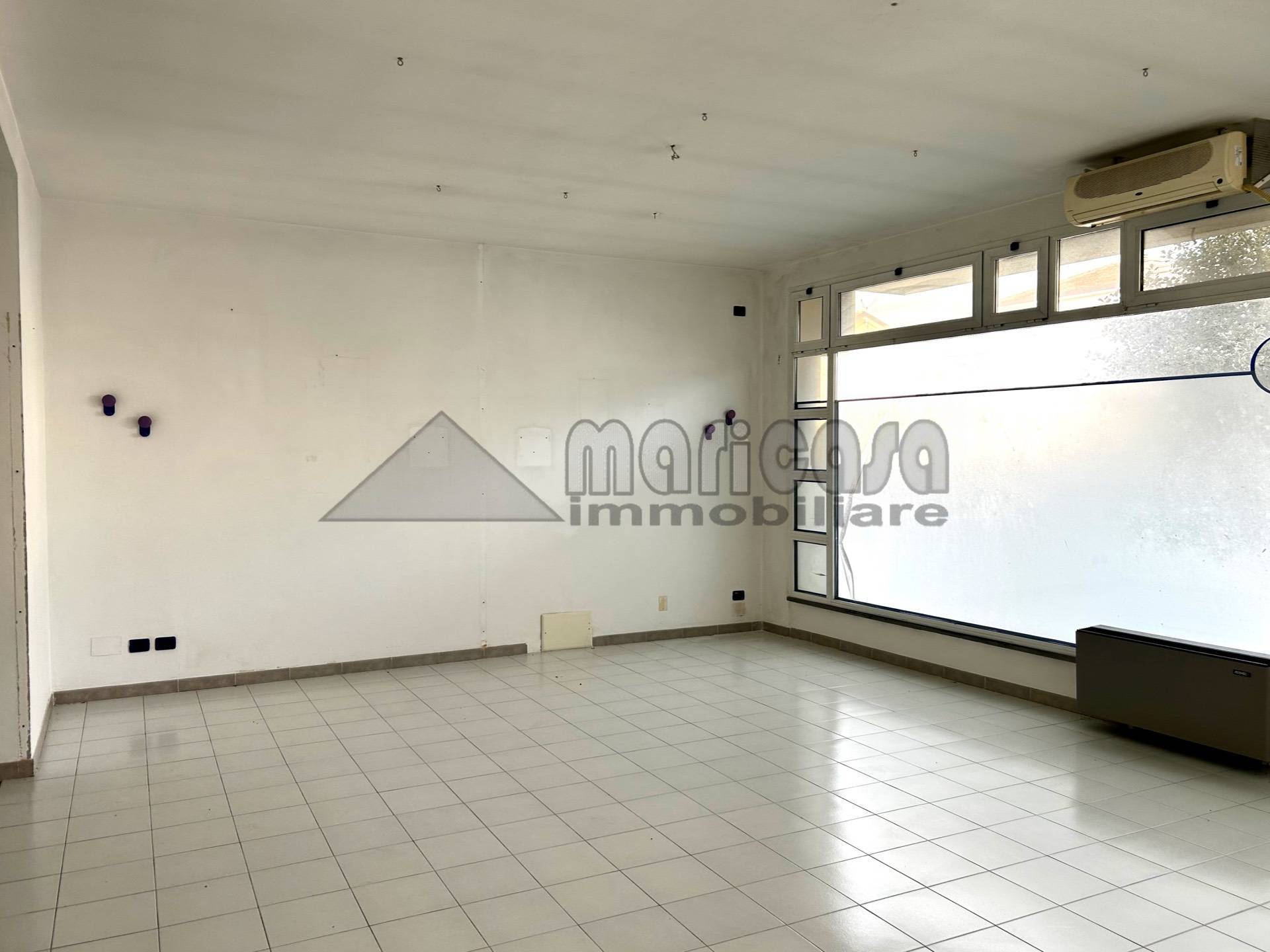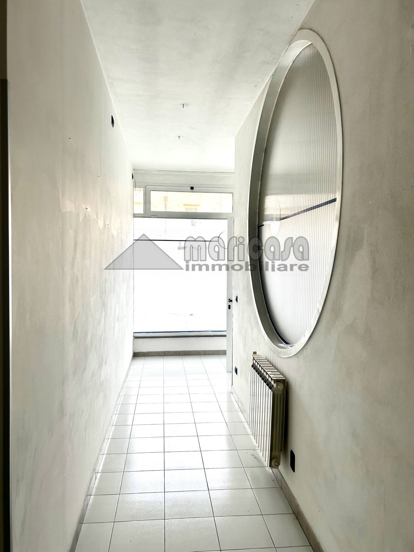 In posizione strategica e con due ampie vetrine e una piccola sala d'aspetto nell'ingresso, è ubicato in posizione di grande passaggio ed alta visibilità ed è così composto: ingresso ampio arredabile da adibire a sala d'attesa, tre grandi vani separati in parte da muri, dei quali uno più ampio con luminosa vetrina, un bagno con finestra e due ripostigli.
